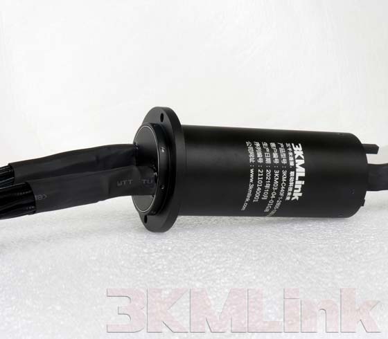 3KM T-series slip ring is designed with a through hole for shaft mounting, the through hole sizes are from 12.7mm to 124.6mm. it could be applied to transmit power, signals, RF, gas and fluid when the devices require 360° rotating.